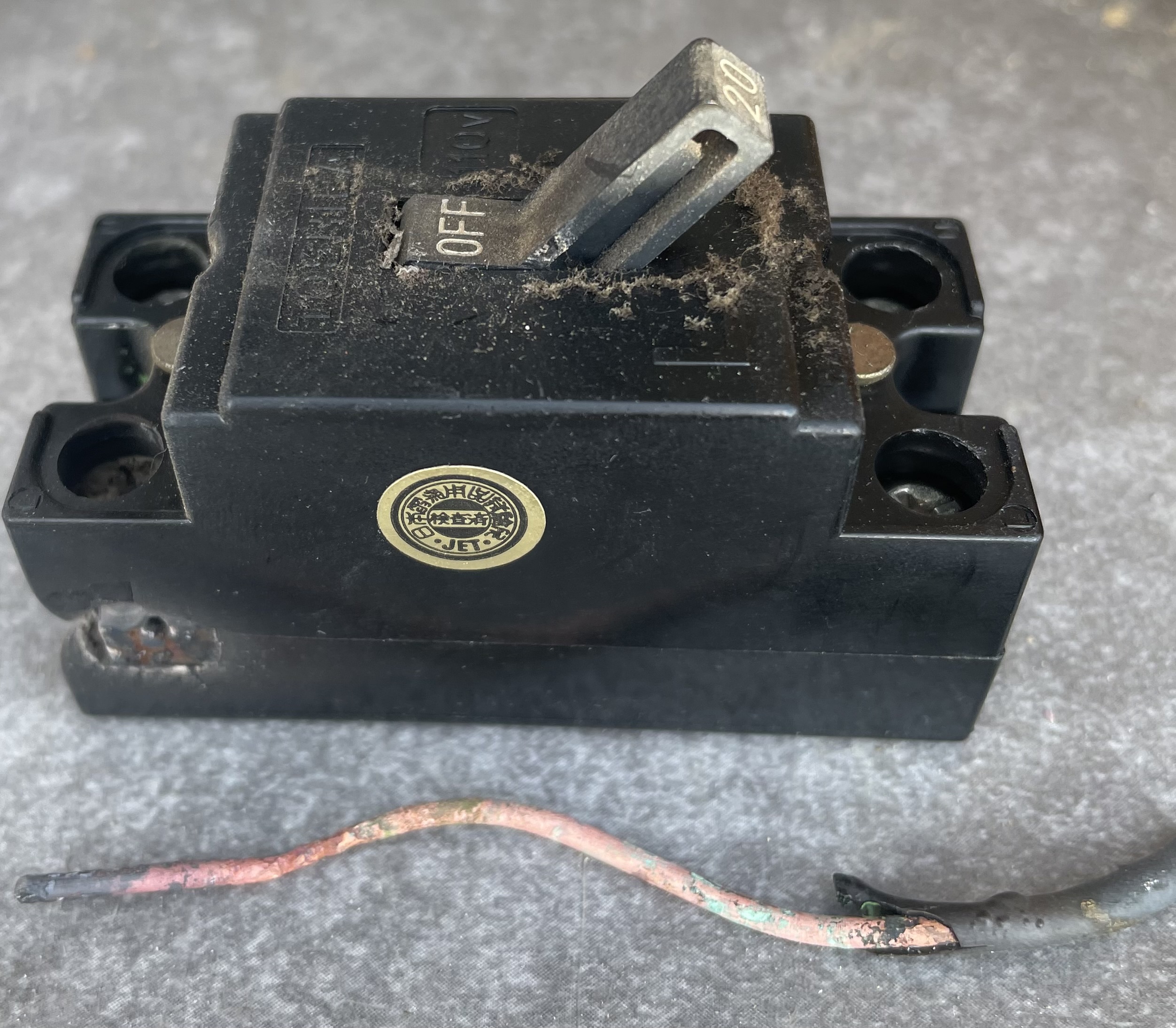 お得意様宅のコンセント数カ所と一部の照明が点かない漏電ではない何だろう天井裏でネズミが電線をかじった?ブレーカーを見ると二次側の電線が焼け焦げブレーカーの電線を締め付けるネジがあまくて接触不良が原因大事に至らず良かったです瞬間的にお湯が沸くポットを頻繁に使用されるコンセントも危険です壁の中で焼け焦げた電線の修理は多いです昔のコマーシャルを思い出します「焼き肉焼いても家焼くな」これは火を使って焼肉...